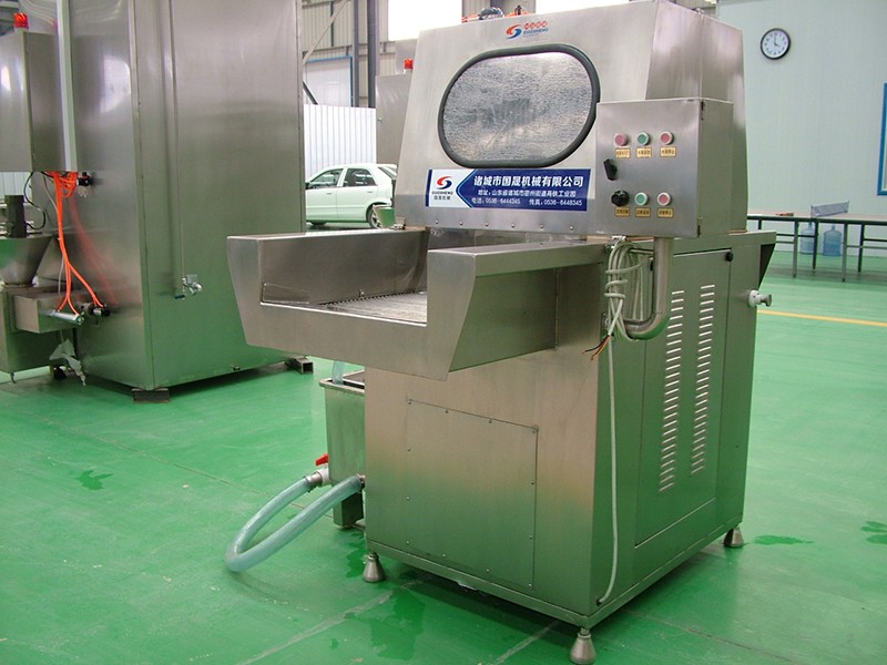 本机可将盐水及辅料配制的腌渍均匀地注射到肉块中,缩短了腌渍时间,大大提高了肉制品的口味及出口率。可根据工艺师要求调节注射压力,腌渍剂均匀连续入肉中,达到理想的注射效果。本机设计严谨、结构合理、操作简便,设有自动保护装置,当注射针碰到硬物时注射针随之抬起,不受损坏,是肉制品加工过程中的理想设备。